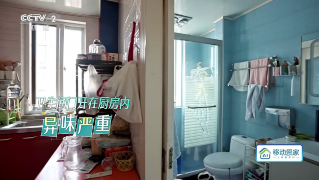 动线尴尬:厨卫门对门,异味倒灌,空间利用极不合理。