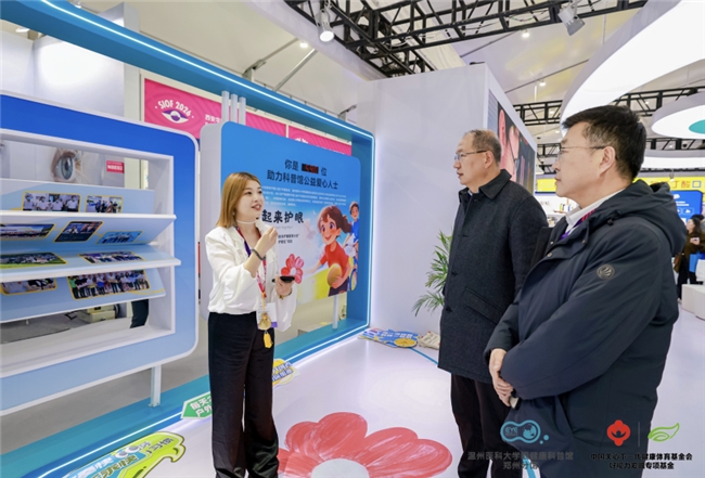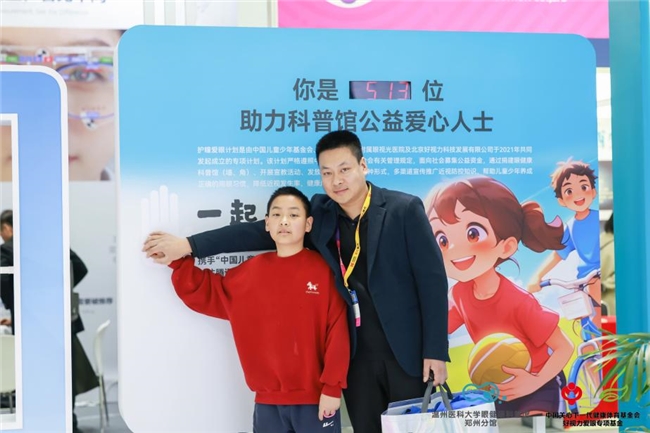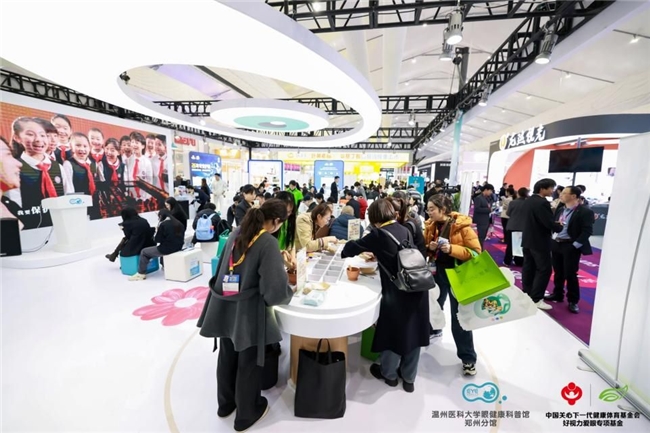 其中温州医科大学眼健康科普馆郑州分馆联合中国关心下一代健康体育基金会好视力爱眼专项基金所在的N8馆C02号展位,作为全场唯一一个科普性质展位,吸引了许多参展观众驻足。