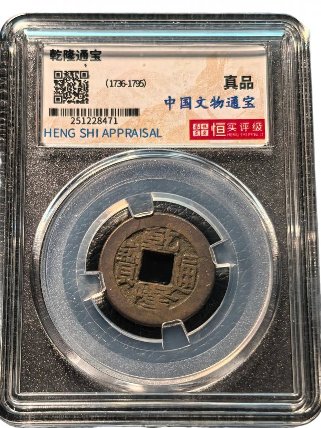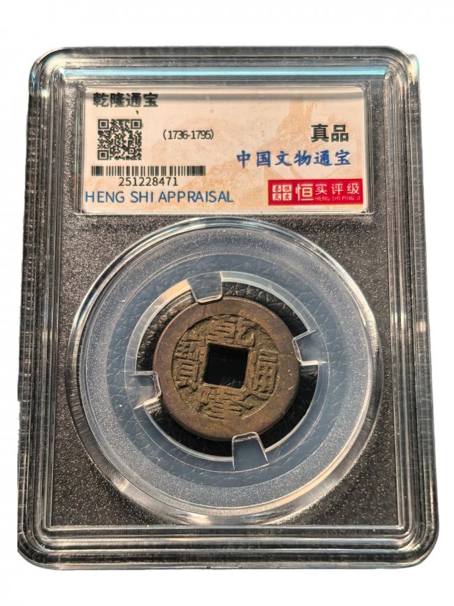 拍品核心信息藏品:清 乾隆通宝(宝泉局・传世极美品)年代:清乾隆元年(1736 年)认证:恒实评级真品封装品相:传世极美,包浆醇厚,无修补无磕碰,原生态官铸风貌价值:康乾盛世实物见证 + 中央官铸标准器 + 古泉收藏硬通货