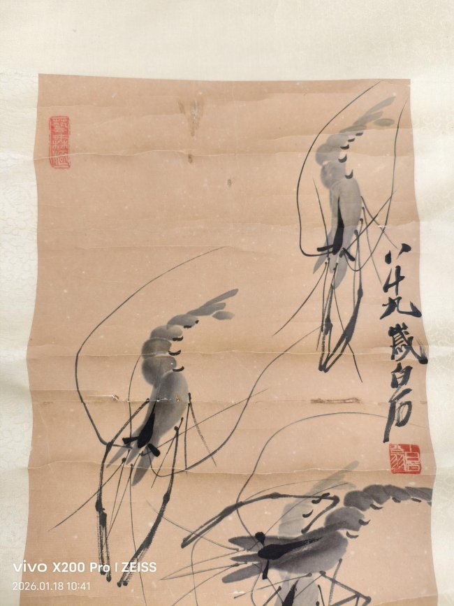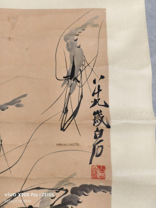 拍品核心信息藏品:齐白石墨虾臻品品类:近现代写意文人画标杆品相:笔墨精绝、款印齐全、装裱完整、传承有序价值:拍卖市场硬通货 + 艺术巅峰之作 + 保值增值核心标的