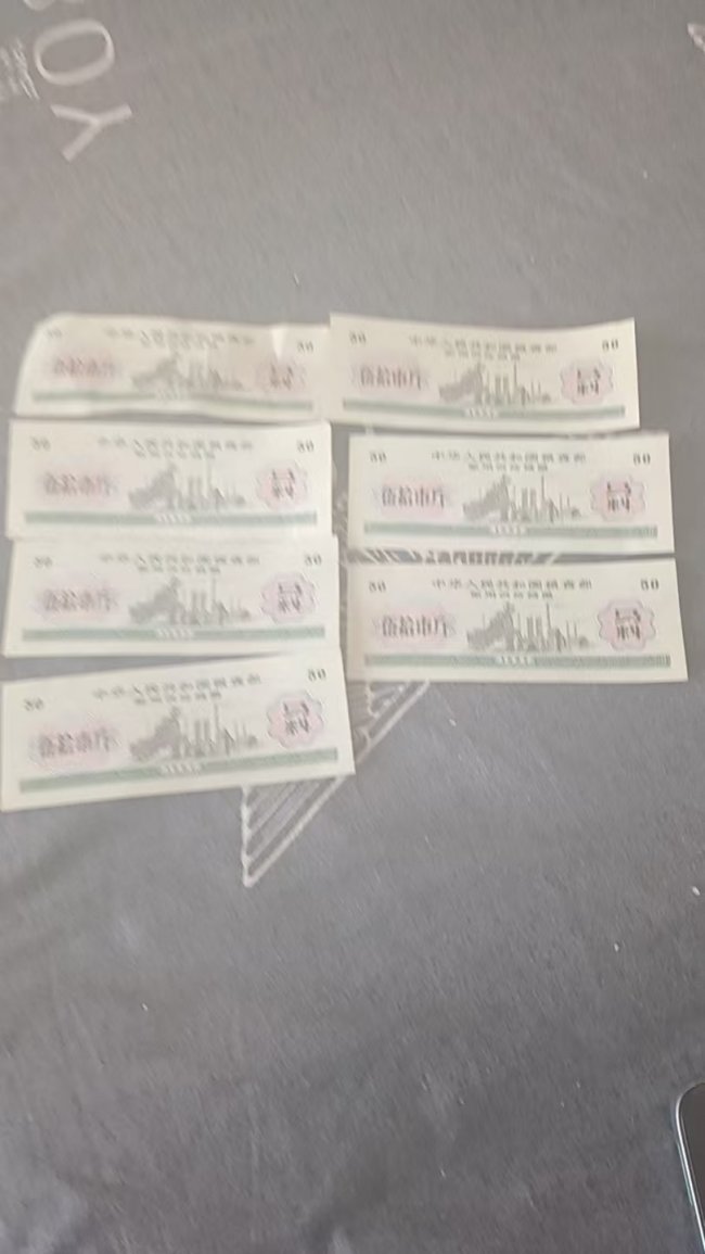 军供专属・马料特票 粮票收藏界的稀缺顶流 区别于市面常见的民用粮票,此批粮票为中华人民共和国粮食部专项军工发行,票面明确标注「军用供给粮票」,面额伍拾市斤,用途直指「马料」,是当年部队军马后勤保障的专属凭证。军用粮票本身流通范围严苛受限、发行管控极严,而马料专用面额更是粮票体系中极小众的稀缺门类,民用票易得、军供票难寻,马料军供票更是凤毛麟角,堪称票证收藏界的「硬核稀缺品」。 ????️ 时代印记・原票风貌 近六十年完好留存 票券设计自带鲜明的年代风骨,正面以工业高炉为核心图案,尽显新中国工业建设与国防后勤的时代风貌,背面印制严格的使用规范,版式庄重、特征鲜明。历经近六十年岁月沉淀,50 张粮票完整保留原票原生留存风貌,整体品相完好、无严重破损,成组规整传世,在管控严格、存世量极少的军用票证中,如此完好的批量货源实属一货难求。